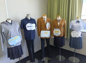画像は説明会の会場に展示されていた制服のサンプルです。